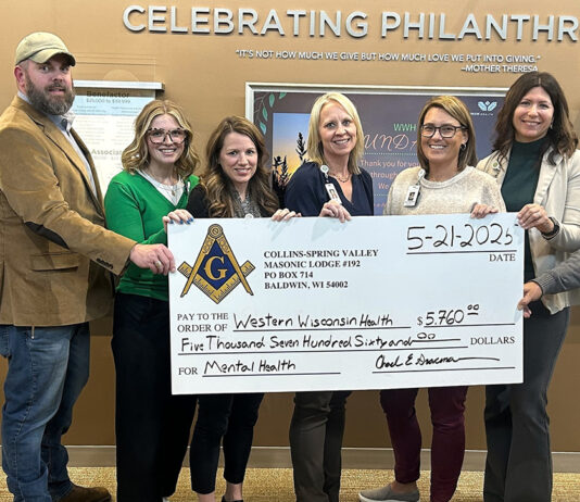 Submitted by Ryma Lindquist, WWHBALDWIN, WI – The Western Wisconsin Health (WWH) Foundation is honored to have received a $5,700 donation from the Collins-Spring...