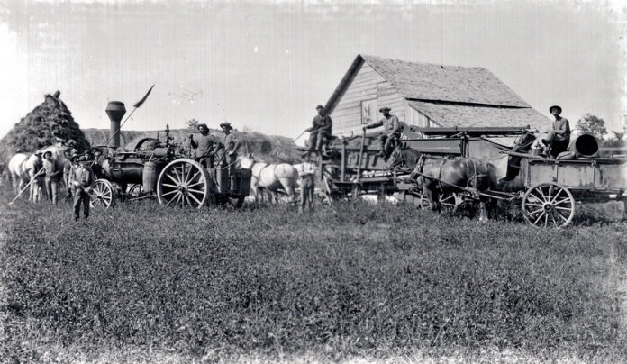 ELMWOOD, WI – This is a Wild story, literally. W is for Wild…John Wild (1834-1915) was born in Germany and came to the United States with this father, Johan (1796-1871) and brothers in 1852 when he was 17 years old. He and Theresa Sterr (1838-1922) were married in 1856 and had nine children. John served in Company A of the 45th Wisconsin Infantry in the Civil War. Of his nine children, two moved to Pierce County, John, Jr. and Frank. Frank ran a threshing operation after settling in the Elmwood area.