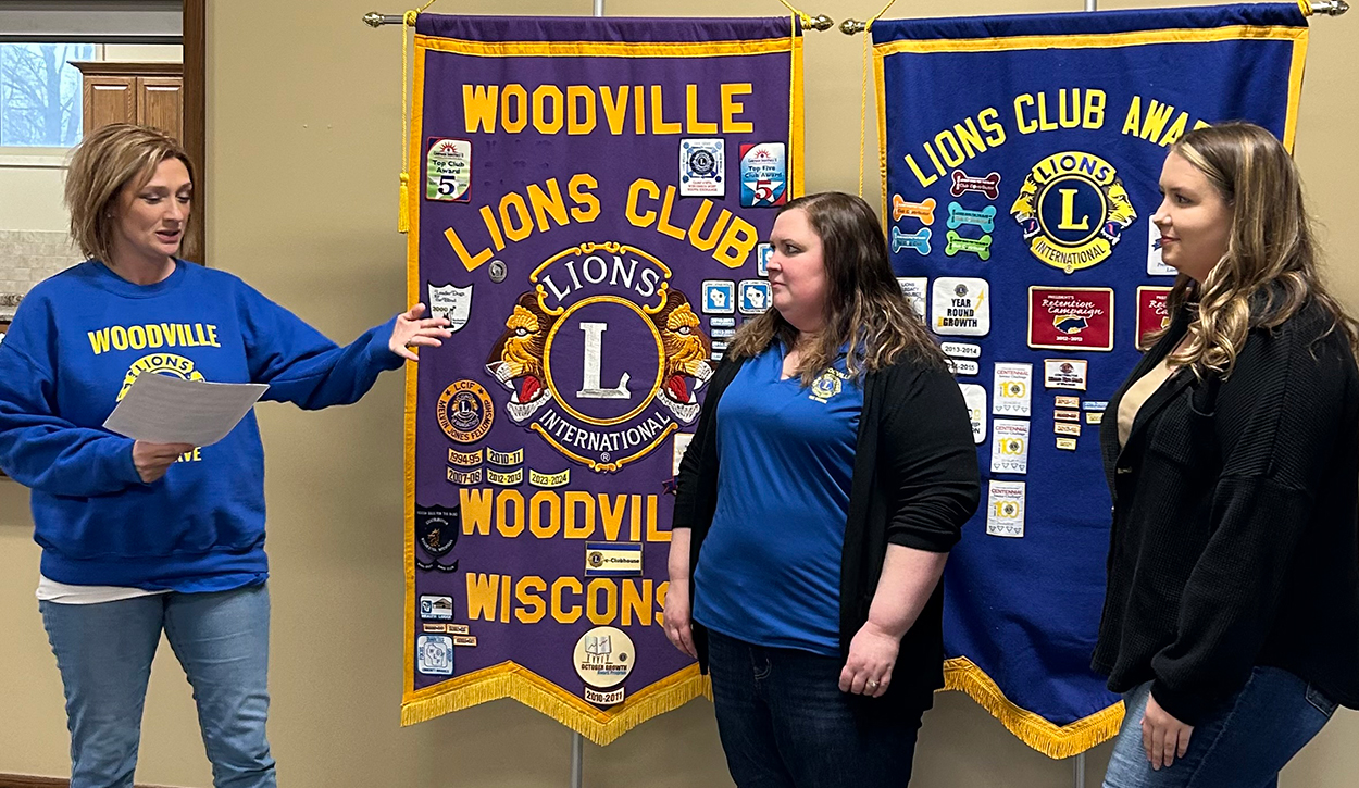 WOODVILLE, WI – The Woodville Lions Club met on Monday, April 14, 2025, for their monthly meeting and the Woodville Cafe served a delicious meal. The first order of business was the induction of a new member into the Club. Libby Whirry has been on the Syttende Mai Queen Committee for a number of years and has now officially joined the Woodville Lions Club. Lion Hattie Freshwater is her sponsor. Welcome Libby!