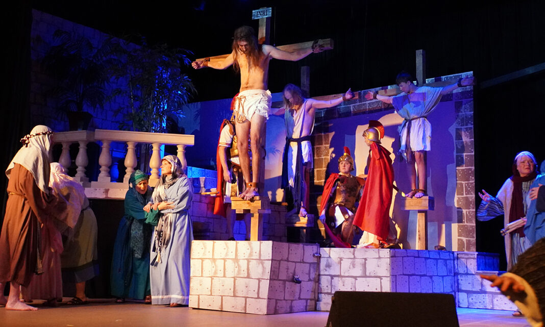 “Passion Of Christ, A Musical” is community theater at its finest. The old story is presented with care. The 28 cast members do an extraordinary portrayal with completely engaged acting and singing to bring the last week of Jesus of Nazareth’s life to a local stage.
