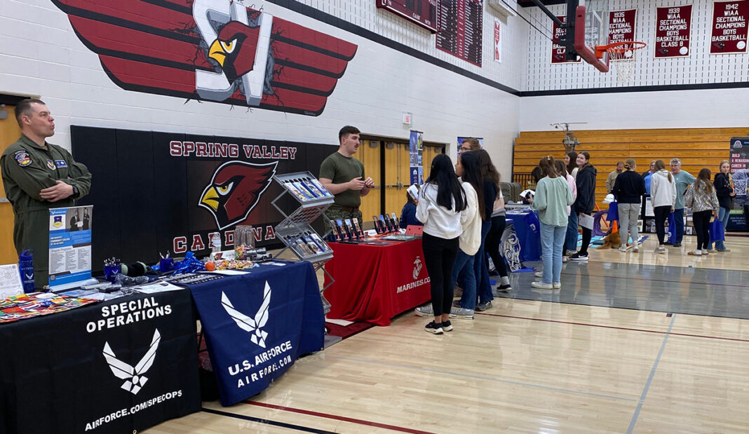 SPRING VALLEY, WI – Spring Valley High School held a career fair on Friday, April 25. Each business brought with them artifacts to represent their company. Students were able to engage in conversation with all area businesses to receive more information on the type of careers offered at their company, along with the schooling needed to begin working with them.